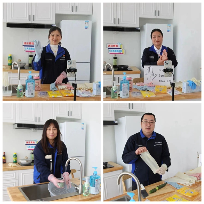從綠幕直播間搬到了充滿生活氣息的“廚房”,在新的場景中,華騰橡塑公司手套產品的性能,更好、更直觀地展示給了消費者。