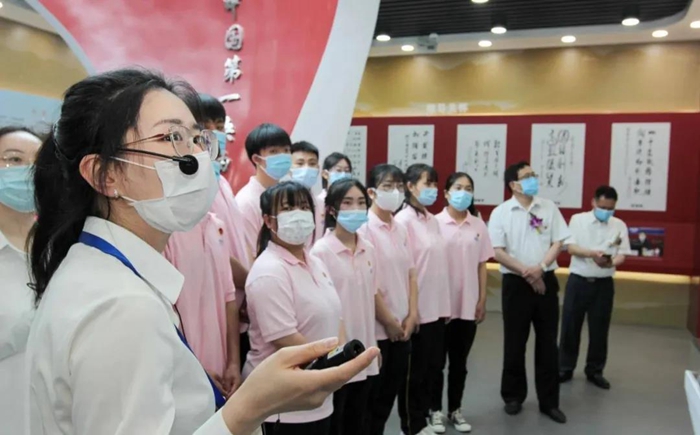 揭牌儀式后,校企雙方參觀了中核礦業科技展覽館和分析測試中心,同學們在贊嘆自豪之余,倍受振奮鼓舞。有的說,偉大成就中凝聚了先輩堅定的理想信念,不畏艱難、敢于擔當、勇往直前的奮斗精神……有的說,從中感受到國家的發展騰飛離不開“工匠精神”,我能做的就是要努力學習技術技能,以實際行動弘揚踐行“工匠精神”……有的說,對歷史學習越多、了解越多,越加深了自己對“學史增信”的理解……