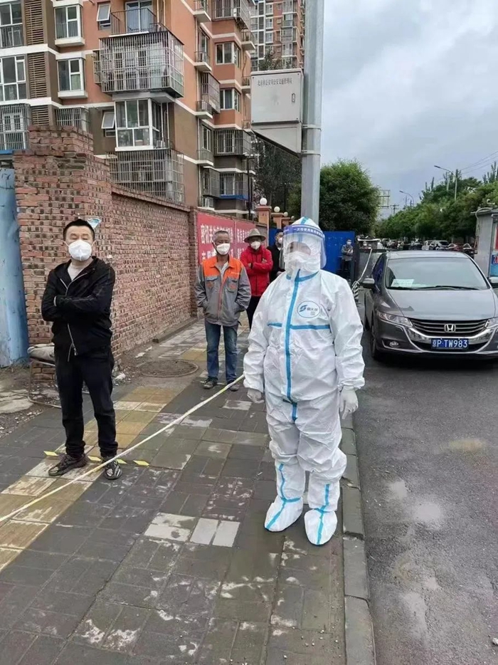 眼看天氣越來越熱,北京出現(xiàn)連續(xù)高溫,為更好地保護負責(zé)檢測的醫(yī)護和社工人員,社區(qū)決定下午一點停止檢測,可是這個舉動開始并不被居民們理解,往往到了一點之后還是有人陸陸續(xù)續(xù)前來測核酸。每每這個時候,我總會站到隊尾向大家解釋,告訴他們坐在隔離艙內(nèi)檢測人員的不容易,請大家換位思考給予諒解。雖然有時會面對許多質(zhì)疑的聲音,但我依舊會保持一份熱情、一份理解、一份關(guān)愛,因為我堅信,這身防護服帶給我的是榮耀、是真真切切為人民服務(wù)的標識。現(xiàn)在,居民們漸漸理解了工作人員的不易,我也感受到了居民們的通情達理和關(guān)愛。