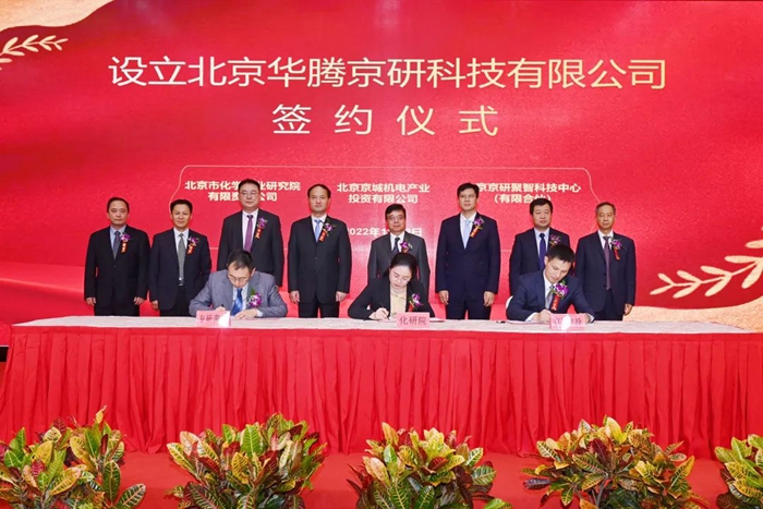 11月2日,北京化工集團(tuán)攜手京城機(jī)電共同舉行合資合作設(shè)立北京華騰京研科技有限公司簽約儀式,北京化工集團(tuán)黨委書記、董事長王國華,京城機(jī)電黨委書記、董事長阮忠奎,黨委副書記、總經(jīng)理王軍出席簽約儀式。北京化工集團(tuán)黨委副書記、總經(jīng)理陳宇主持簽約儀式。