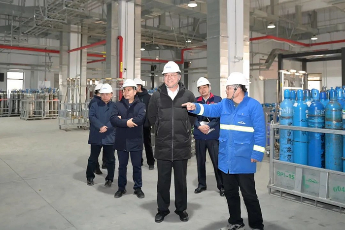 陳宇首先走進(jìn)北普工廠(chǎng),深入生產(chǎn)一線(xiàn)了解氣體保供情況 。陳宇詳細(xì)查看了北普工廠(chǎng)灌裝生產(chǎn)線(xiàn)運(yùn)行情況、氧氣瓶安全裝卸、運(yùn)輸和各類(lèi)氣瓶的存儲(chǔ)情況。詳細(xì)了解了節(jié)日期間首都各大醫(yī)院需求情況及保障措施。叮囑一線(xiàn)干部職工要始終把安全生產(chǎn)放在首位,堅(jiān)決扛起節(jié)日期間安全生產(chǎn)主體責(zé)任,同時(shí)要加強(qiáng)調(diào)度,為首都各大醫(yī)院提供及時(shí)便捷的保障服務(wù),確保首都市民度過(guò)一個(gè)安全健康的春節(jié)。